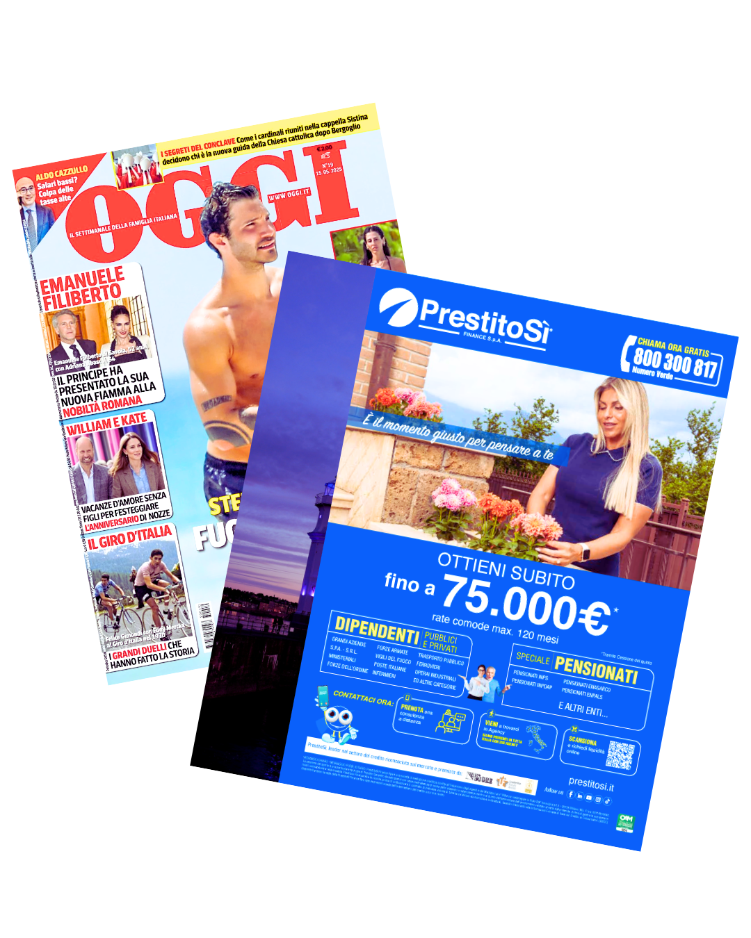 Siamo protagonisti di una campagna integrata sui canali editoriali e digitali del gruppo Cairo per promuovere le nostre offerte e raccontare il nostro impegno al fianco delle famiglie e delle imprese italiane. Vieni a scoprire PrestitoSì anche in edicola!